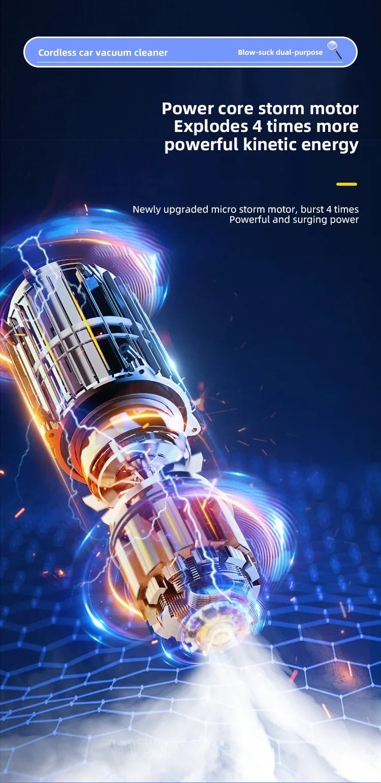 - Perfect for Car Interiors: Compact yet powerful suction reaches every corner, mat, and seat gap.